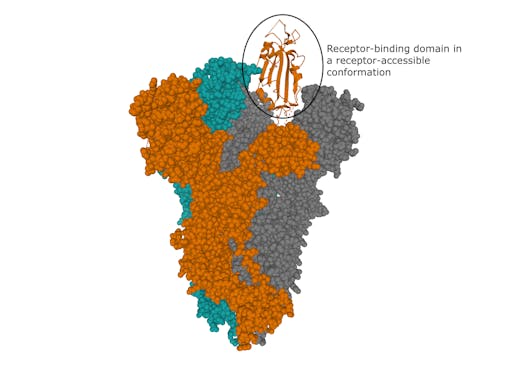 The structure of the SARS-CoV-2 spike was recently determined using electron microscopy. This revealed key molecular features such as a receptor-binding domain in a conformation available to interact with the receptor on human cells.