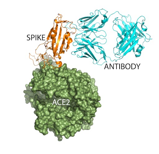 Antibodies are extremely well suited as blocking, or neutralization agents. Structural biologists have already determined the structure of a complex between the SARS-CoV-2 spike protein and a Fab portion of a human antibody. Simple structural superpositions of this complex with the spike-ACE2 complex (overlaying the spike proteins), shows that in this case while the antibody does not compete for the same binding site as ACE2 on the spike, its antigen-binding site is similar in size. This indicates that it will be possible to identify, or design neutralizing antibodies, that become powerful weapons in the fight against COVID-19. As the authors of the paper describing the crystal structure of an engineered receptor-binding domain in complex with human ACE2 point out, the receptor-binding domain could itself function as a subunit vaccine. This group have recently demonstrated this approach for the design of MERS coronavirus vaccines.